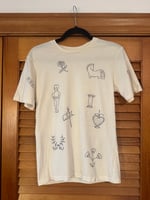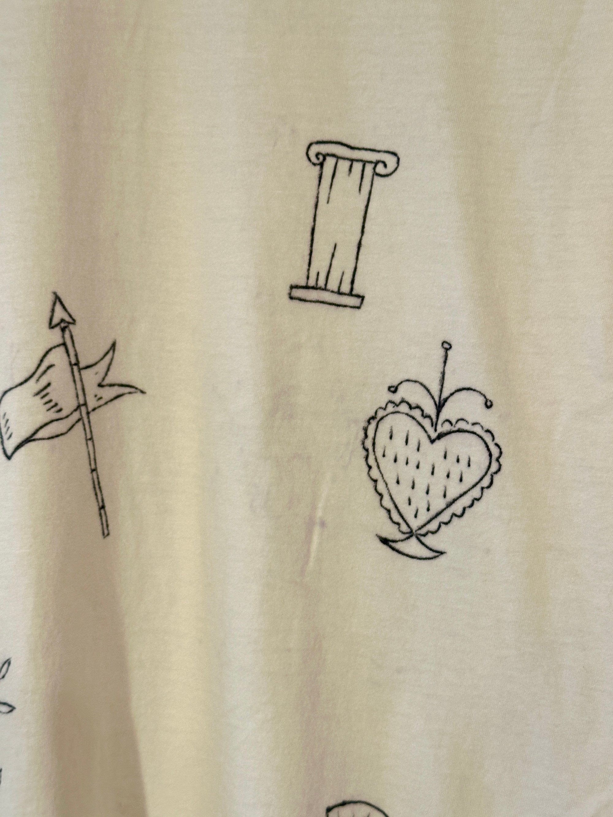 Off white cotton t-shirt with black fabric marker tattoo design